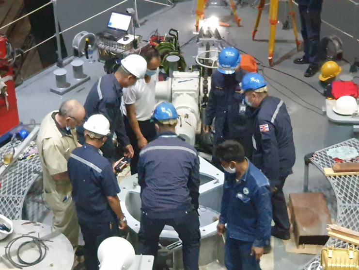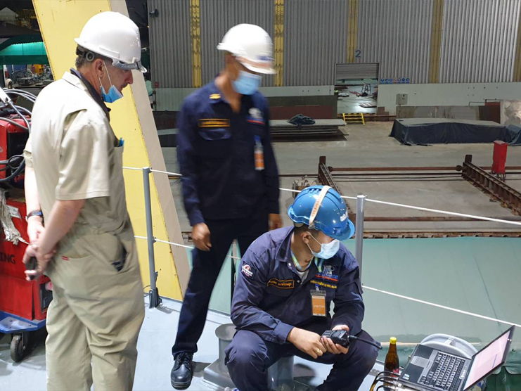 จนท.กฟอ.ศซส.สพ.ทร. ให้การสนับสนุนตรวจสอบแท่นฐานปืนเพื่อเตรียมติดตั้งระบบควบคุมปืน ๓๐ มม. สำหรับโครงการต่อเรือตรวจการณ์ใกล้ฝั่ง เรือ ต.๑๑๔ และ เรือ ต.๑๑๕ ใน ม.ค.๖๔