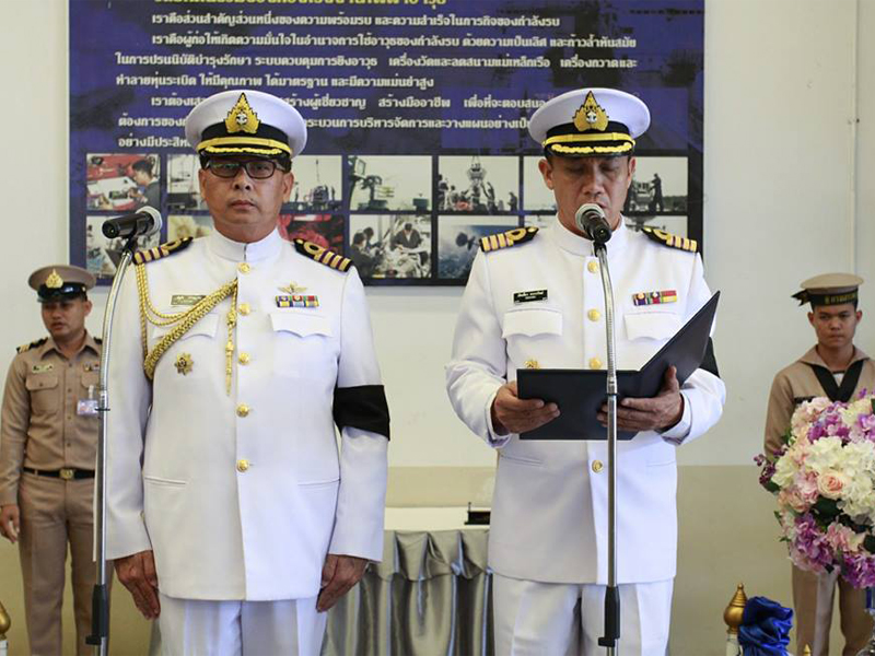 ข้าราชการ กฟอ.ศซส.สพ.ทร. ร่วมพิธีรับส่งหน้าที่ผู้อำนวยการกองโรงงานไฟฟ้าอาวุธฯ ที่ บก.กฟอ.ศซส.สพ.ทร.เมื่อ ๓ ต.ค.๖๐