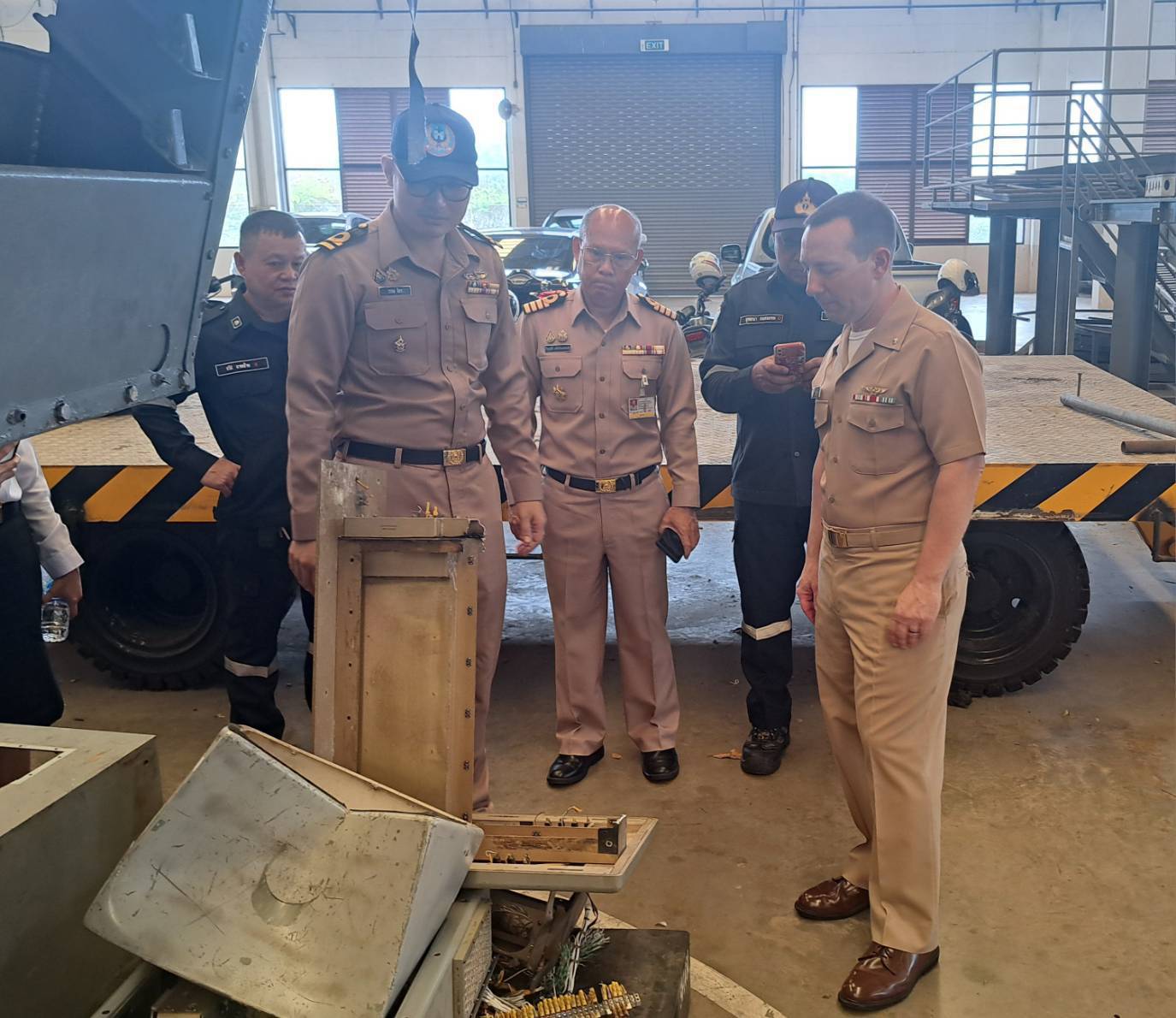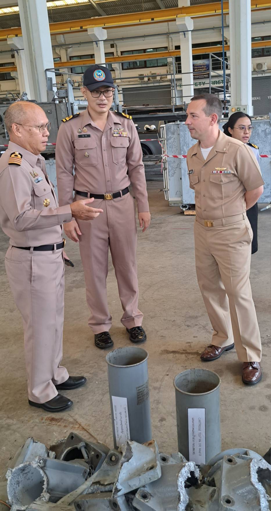 น.อ.ธัญญ์นิธิ แก้วเวียงเดชณรัฐ รอง ผอ.ศซส.สพ.ทร. เข้าร่วมฟังการบรรยายสรุปผลการปฏิบัติการแปรสภาพเรือพุทธยอดฟ้าจุฬาโลก และ เรือพุทธเลิศหล้านภาลัย. ร่วมกับ จนท.จัสแมกไทยฯ และเจ้าหน้าที่ DLA Disposition Services Pearl Harbor / Bangkok Site ในวันอังคารที่ ๒๓ ก.ย.๒๕๖๘ เวลา ๐๙๓๐ ณ ห้องประชุม กฟอ.ศซส.สพ.ทร.